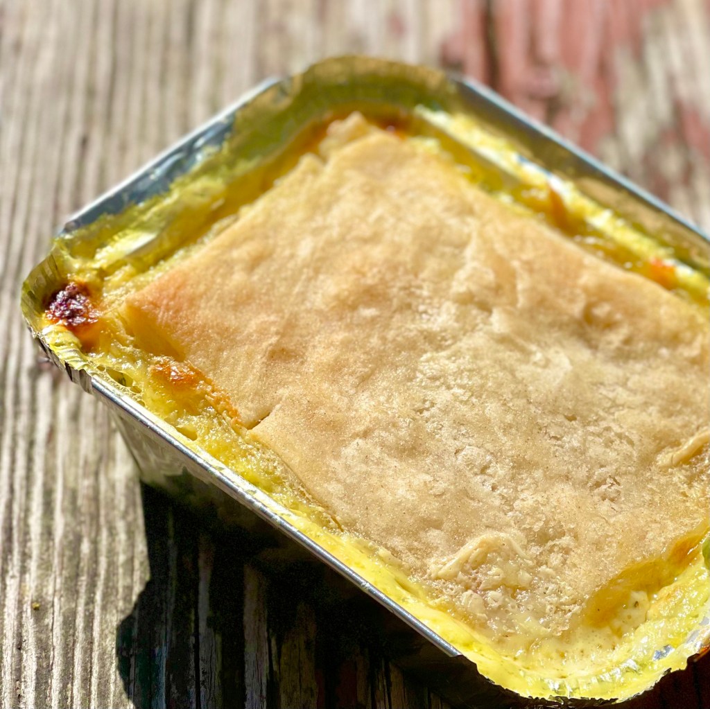 In a stock pot, melt butter and add onion, carrots, and peas. Cook till the carrots are tender. Add the garlic. Sauté’ till the garlic is aromatic, about 2-3 minutes. Then sprinkle the top with 2 tbsp flour. Stir well. Reduce the heat and add whipping cream. Stir well. Add broth, and seasoning per your preference. I mix it all together and then taste. Then add the chicken. The filling should be consistency of v8. Pour into a 9 x 13 dish. Metal cooks better.